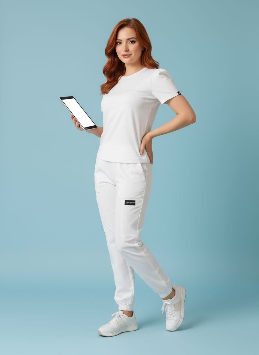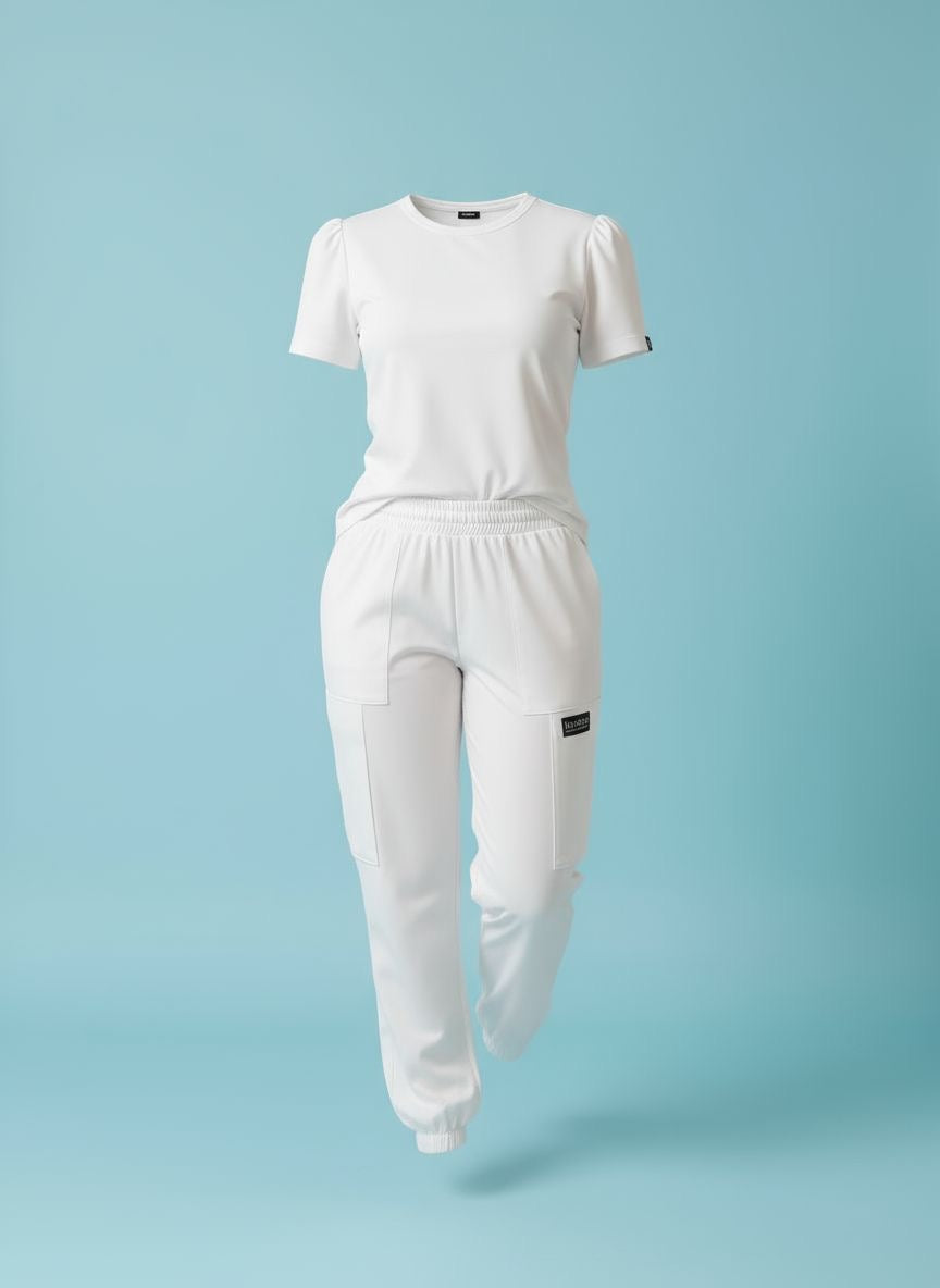 Conjunto profesional cómodo y ligero, ideal para jornadas largas. Incluye camiseta de ajuste moderno y pantalón tipo jogger con bolsillos funcionales. Tela suave, flexible y de secado rápido. Perfecto para médicos, enfermeras, laboratoristas y personal estético.