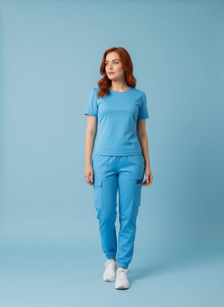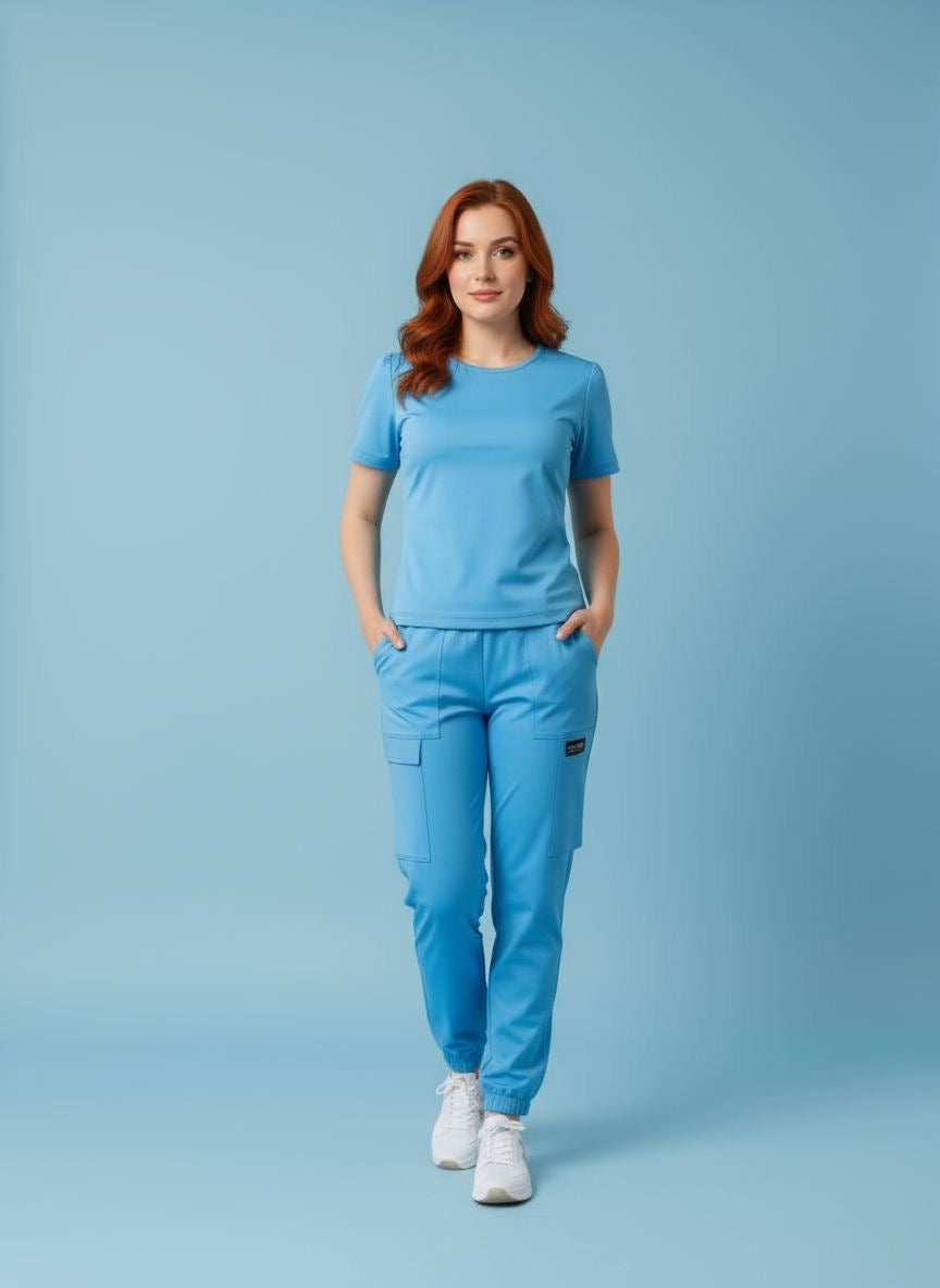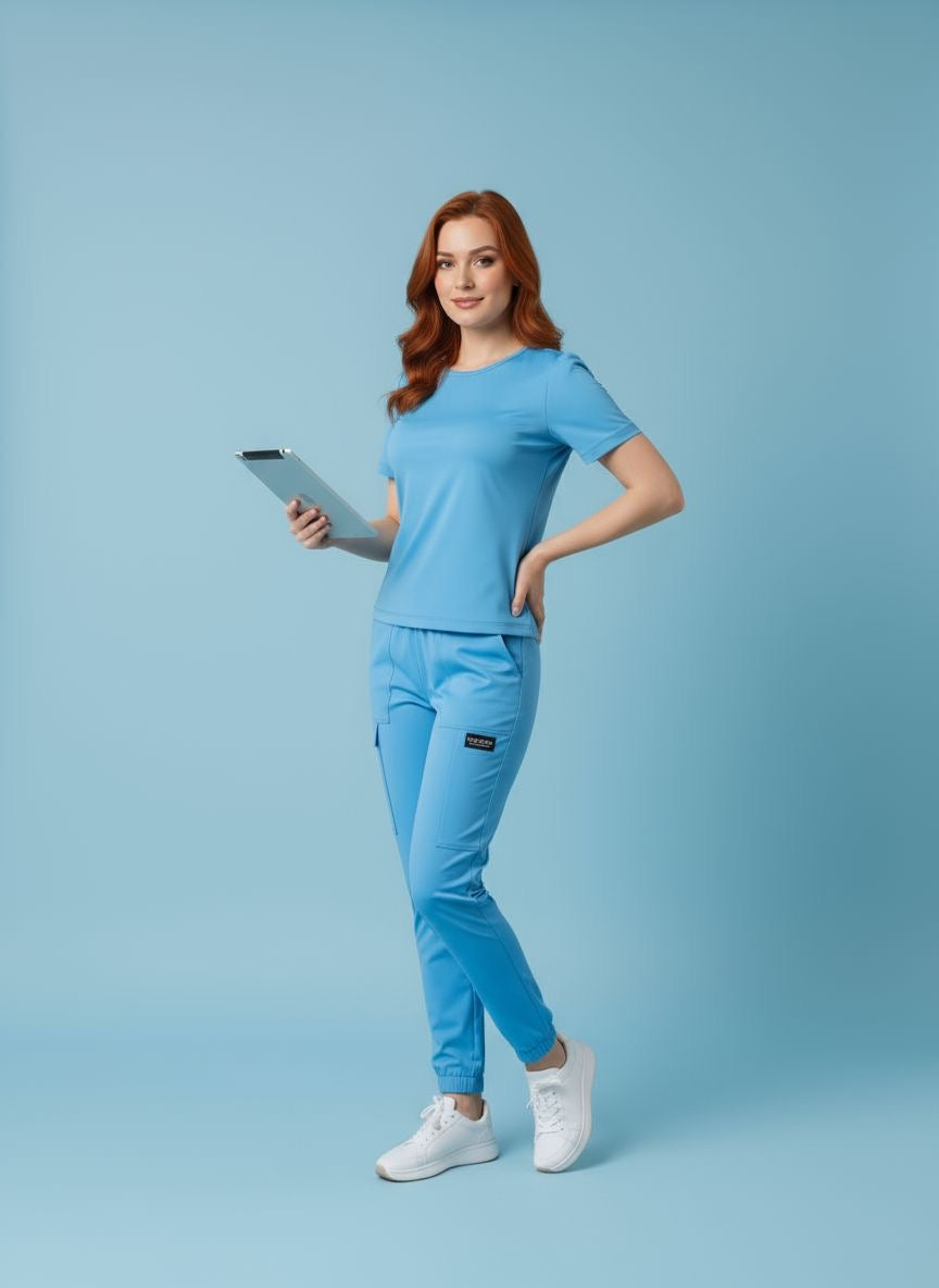 Scrub médico diseñado para largas jornadas laborales, combinando comodidad, funcionalidad y una apariencia profesional impecable.